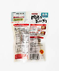 | 製造工程 | 原料解凍ト→ねぎ油煮込み→ご飯調理→炊飯→ご飯成型・計量→ご飯真空冷却→豚肉味付け→肉巻き→焼成→賞味期限印字→充填→真空包装→検品→金属探知機検査→ウエイトチェック→トレー並べ→加圧加熱殺菌→除水→検品、箱詰め→出荷 |