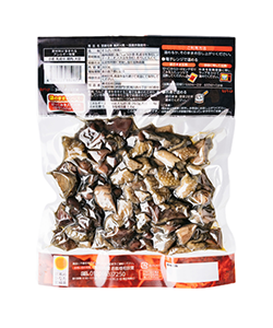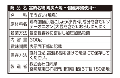 | 製造工程 | 原料解凍→カット→味付け→焼成→検品→X線探知機検査→賞味期限印字→計量・充填→真空包装→検品→金属探知機検査→ウエイトチェック→トレー並べ→加圧加熱殺菌→除水→目視検品・箱詰め→出荷 |
